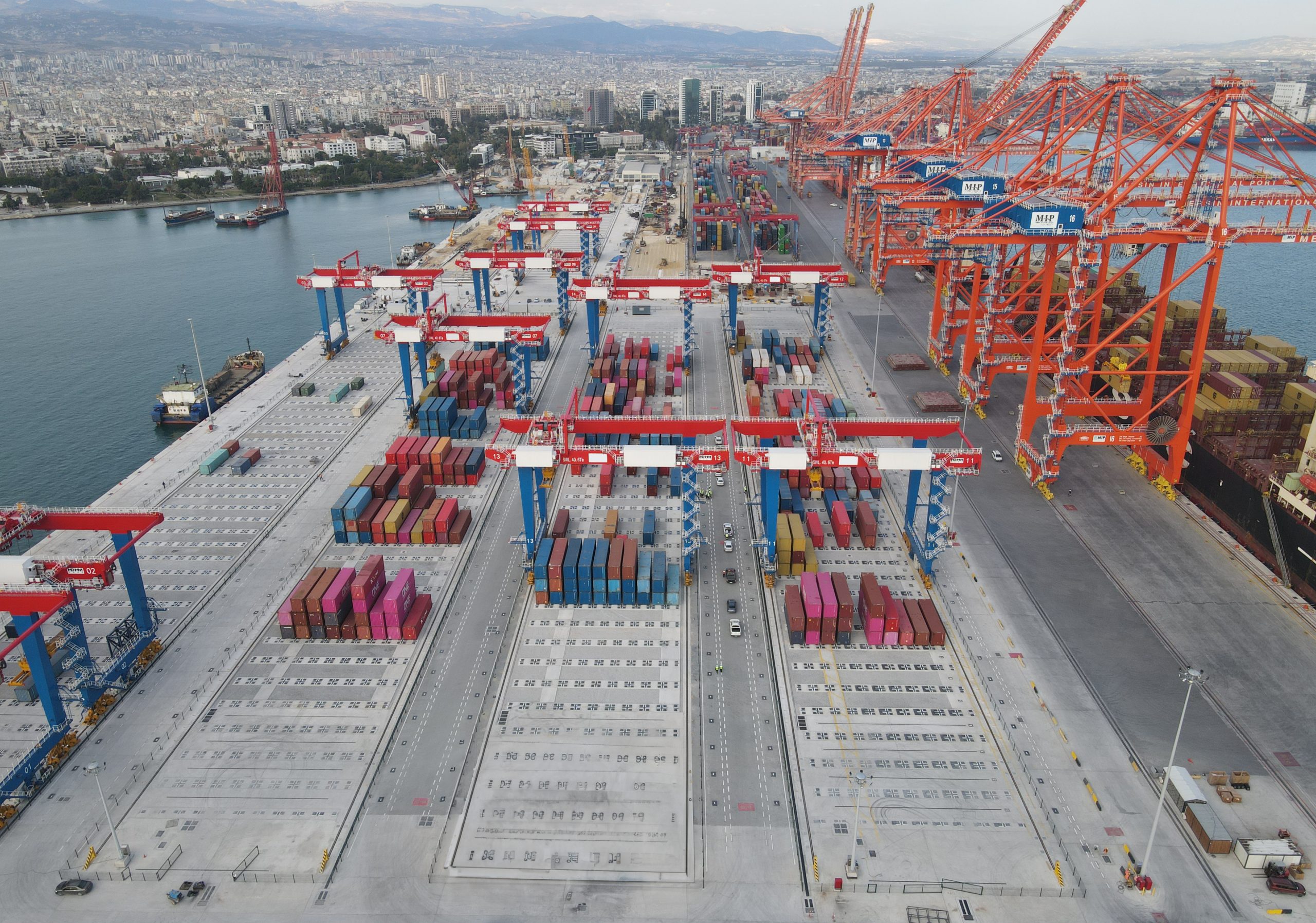 PSA International, IFM Investors ve Akfen Holding’in ortak girişimi olan MIP, ilk aşaması tamamlanarak hizmete giren East Med Hub 2 (EMH2) Projesi’ni, 4 adet gemi-kıyı (STS) rıhtım vinci ve 14 adet tam otomatik raylı portal vinçten (aRMG) oluşan tam entegre bir saha otomasyon sistemi ile donattı.